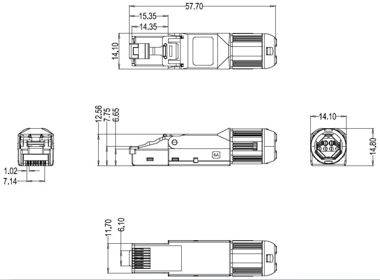 This series of connector is designed specially for field assembling with the solid installation cablesIts feature is not only a simple RJ45 plug, but there is PcB layout built-in, and the toolless designto support the field assembler make quick installation on-site. The rapid assembly could be donein only 2 minutes without special tools, lt is suitable for transmission up to 10 Gigabit Ethernet.Because of fast and cost-saving features, it is popular to the installers during the process ofinstallation,repairs,and maintenance, etc.